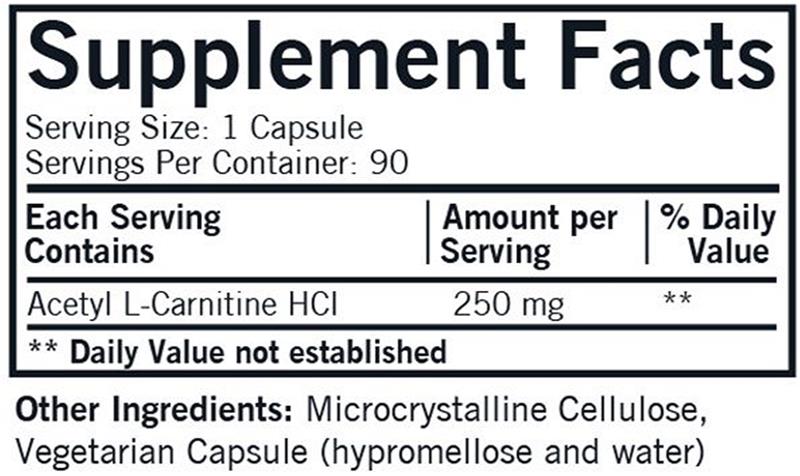 Acetyl L-carnitine can help increase energy production in the mitochondria, which may boost both physical and mental energy. This product offers 250 mg of Acetyl L-carnitine in hypoallergenic capsules. Also known as ALCAR, Acetyl L-carnitine is synthesized to provide a more bioavailable form of L-carnitine, which is a derivative of the amino acid lysine. It offers antioxidant activity and promotes the production of glutathione. L-carnitine is made naturally in the body by the liver and kidneys, and then transported to other tissues such as the brain and heart. Like L-carnitine, acetyl-L- carnitine functions as an antioxidant and promotes the production of glutathione.