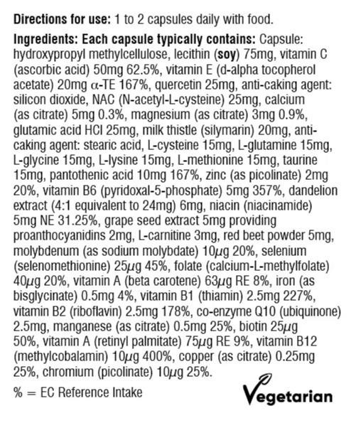 An excellent choice for those who wish to nutritionally support their liver function long-term. Each capsule provides a broad range of vitamins and minerals so can be used as a multivitamin, in addition to specific ingredients that work synergistically to support the health and functioning of the liver. This includes targeted botanicals, antioxidants and amino acids.