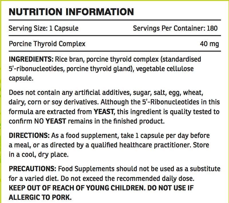 - Nothing is removed. Just raw, premium quality whole porcine thyroid glands, processed at low temperatures to preserve their full nutritional value