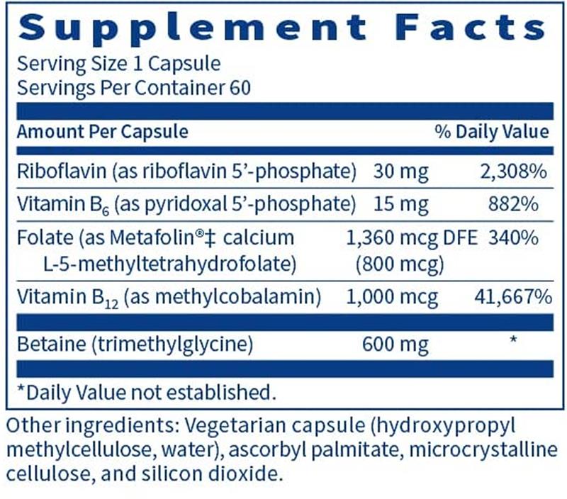 Our Methyl Balance™ supplement features Trimethylglycine (also known as betaine) and active forms of vitamins B12, B6, B2, and folate. Together, these ingredients offer support for heart health, brain function, and mood.