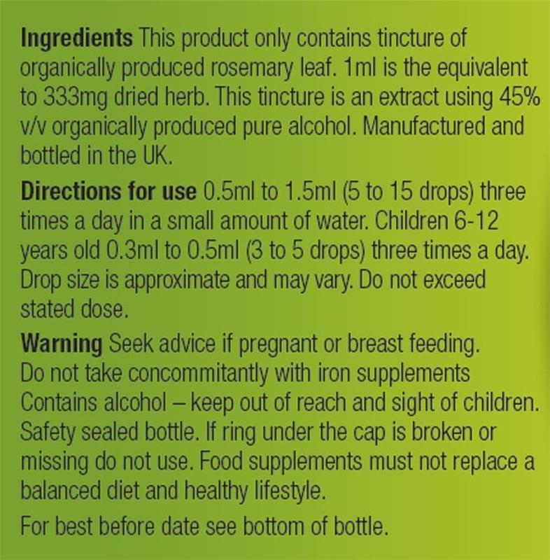 Rosmarinus officinalis (Rosemary) (1ml is the equivalent of 333mg of dried herb)
