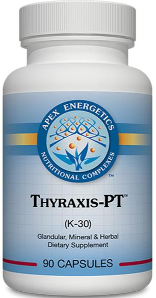 Thyraxis-PT™ supports the hypothalamic-pituitary-thyroid (HPT) axis with a unique formulation of carefully selected glandulars and mineral and nutritional compounds.* This formula also incorporates nutrients that may support thyroid hormones and the pituitary-thyroid system.