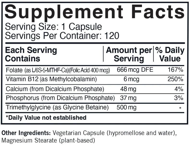 TMG 500 mg with 5-MTHF & Methyl B12 - Hypoallergenic