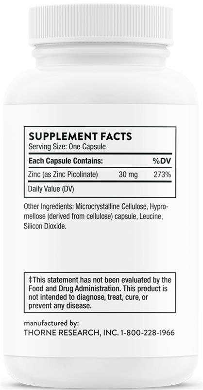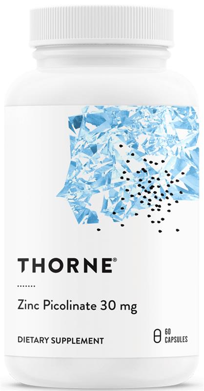 If the body has trouble absorbing a nutrient, then it can't obtain the nutrient’s benefits. Thorne offers two highly absorbable forms of zinc: Zinc Picolinate and Zinc Bisglycinate. Zinc Picolinate is zinc that is bound to the organic acid picolinic acid, which is naturally made in the body from the amino acid L-Tryptophan. Zinc Bisglycinate is zinc that is bound to two molecules of the amino acid glycine – creating a true amino acid chelate.